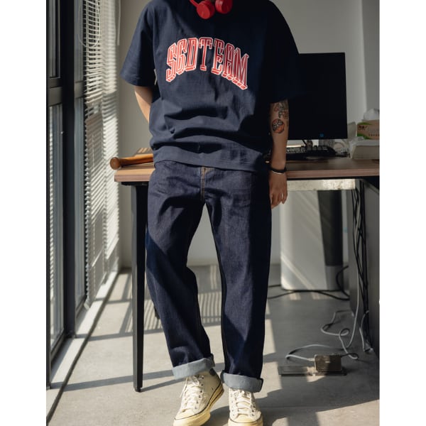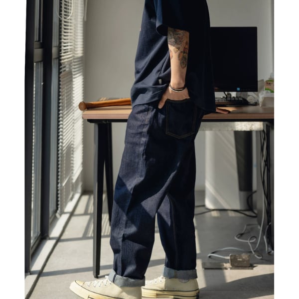 Front pocket design denim pants C3895