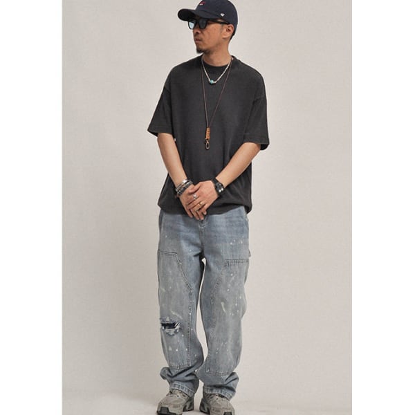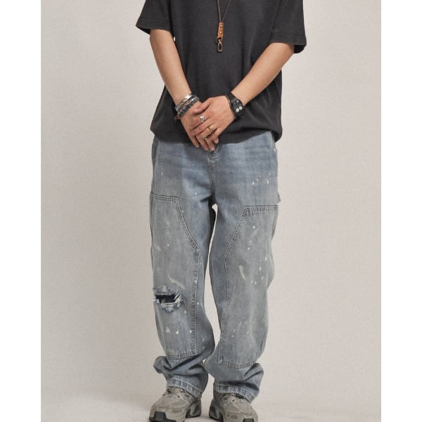 Wide silhouette denim pants C4072