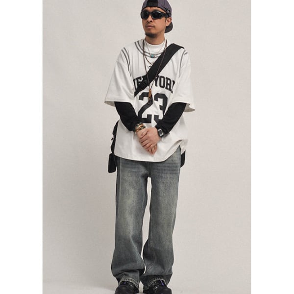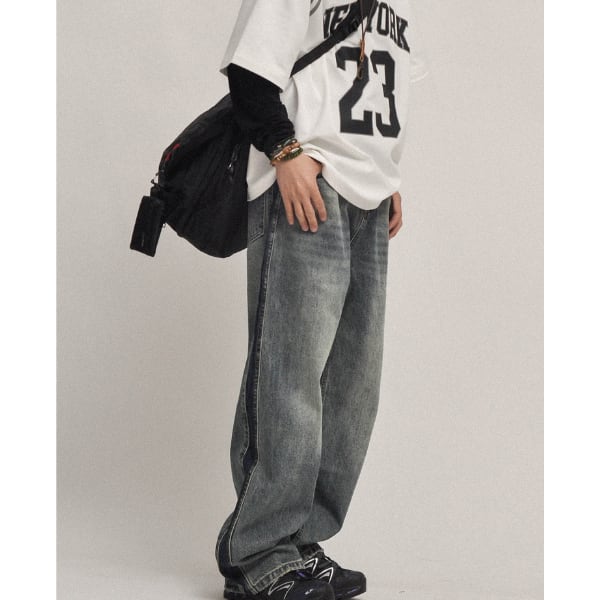 Wide silhouette denim pants C4116